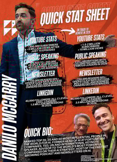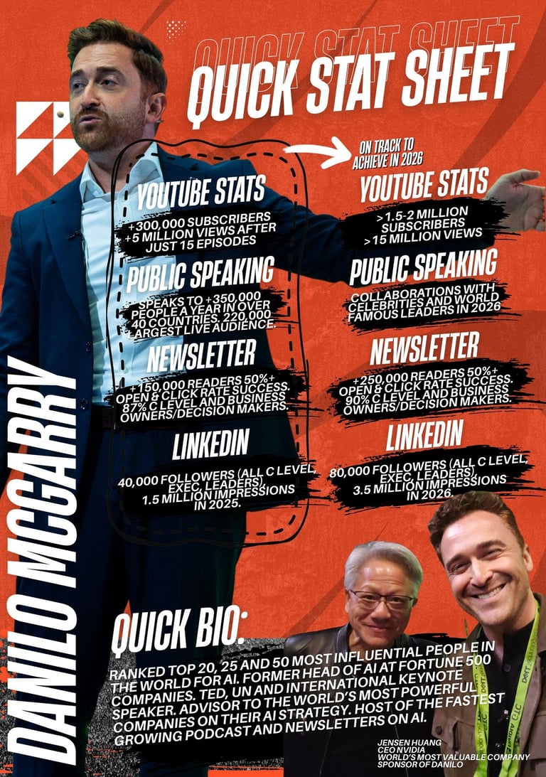 I speak to an audience that brands rarely reach at scale: business owners, CEOs, C level executives, and decision makers who control real budgets. My ecosystem spans LinkedIn, YouTube, Instagram, my newsletter, and my global keynote stages. My audience trusts me because I built my credibility through decades delivering real AI transformation in the world’s largest companies, not theory.